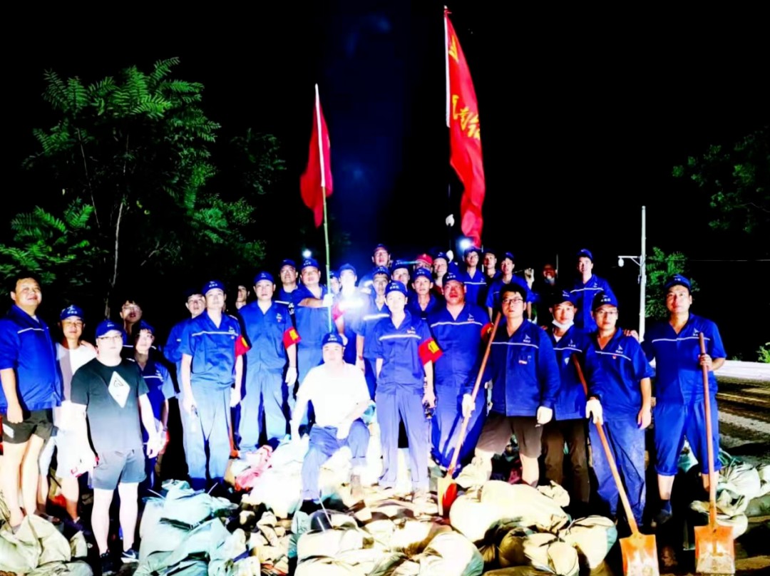 2021年7月28日下午2時,銀金達抗洪救災志愿者奔赴七里鋪至衛共橋筑壩現場,參加修筑攔洪堤壩,一直戰斗到深夜九時。